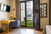 ARENA: Chambre double avec une petite terrasse. Elle est décorée dans des tons marron, en pensant à la tranquillité et à la chaleur du sable de la plage qui se combinent parfaitement avec le vieux plafond en bois. Equipée d'un lit double 160x190 et d'un fauteuil. Il dispose également de tous les équipements nécessaires pour offrir un maximum de confort.